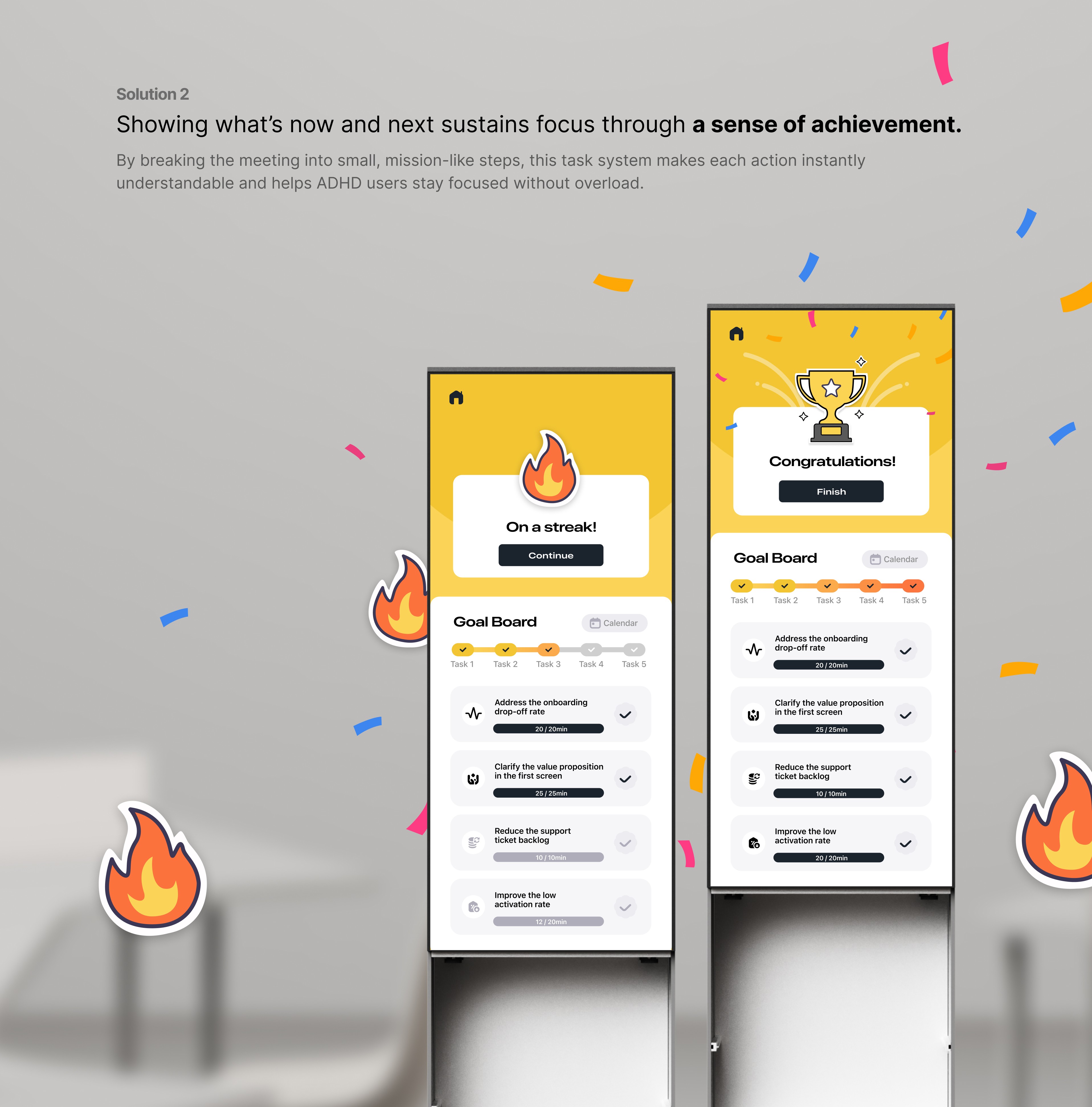 Gamification UX keeps ADHD users continuous goals, helping them stay engaged.