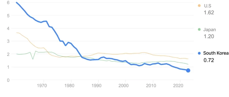 2023: 0.72 births per woman